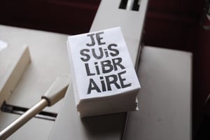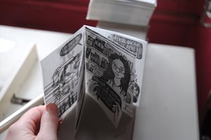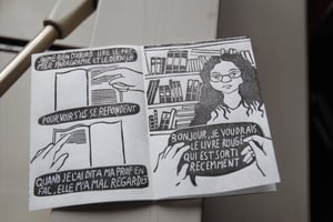 "Je suis libraire" est une linogravure originale au format A4, pliée pour former un mini livre de 6 pages, réalisé en collaboration avec mon amie Justine, libraire, et mettant en scène son travail et ses anecdotes . Si vous aussi vous n'arrivez jamais au bout de votre pile de livres à lire, achetez-le.